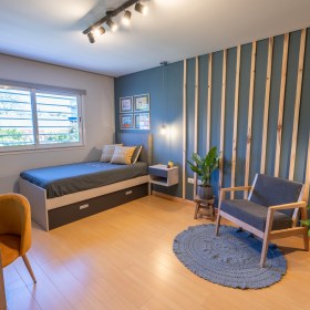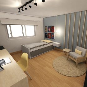 La habitación de Orne y su novio representaba muy bien el hecho de que todo es posible, incluso cuando sientas que no tenés los medios para hacerlo. Ellos además de descansar trabajan ahí, por eso necesitaban un espacio que sea lindo, cómodo y sobretodo funcional. Con la ayuda de Decolab hicimos esto posible.