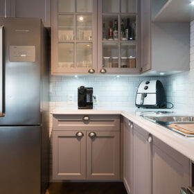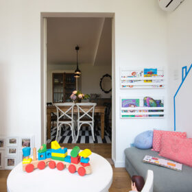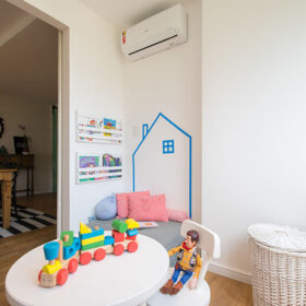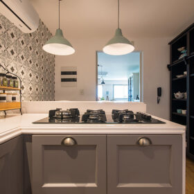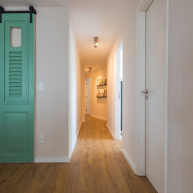 Antes era un departamento donde veías cerámico, cerámico y cerámico, de esos medios comunachos, por eso colocamos pisos click para sumar madera, también usamos calcáreos en distinta áreas y con eso ya había cambiado la onda, la sensación se acercaba más a una casa. En cuanto a distribución se abrieron aberturas dobles, dejando un ambiente integrado dando la sensación de más amplitud.
