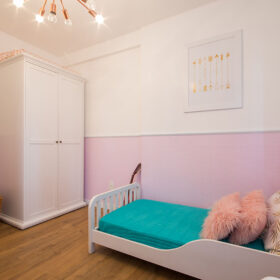 Como verán el mobiliario y la deco están inspirados en un estilo retro rústico con detalles industriales, hay detalles como las molduras que le dan un toque vintage y en cuanto a color el verde es el protagonista en la mayoría de los ambientes. Uno de mis detalles preferidos son las puertas corredizas antiguas que compre en un lugar de demolición y las restaure, no las podía dejar, fueron amor a primera vista.